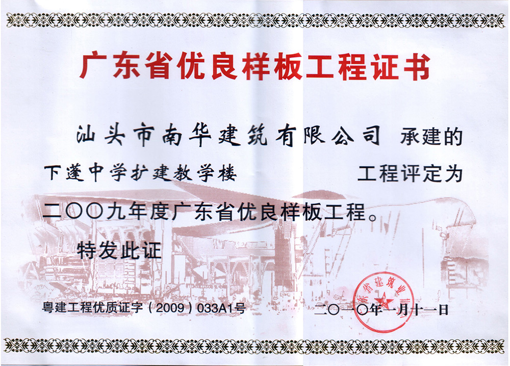 工程樣板證書