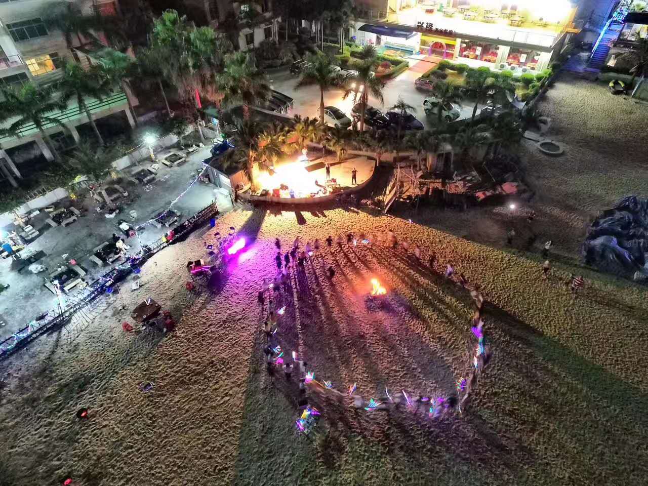 金銀灘沙灘,欣賞海上落日的美景,在沙灘上享用美味的燒烤晚餐,并舉行煙花篝火晚會,大家圍著篝火歡快舞蹈。晚會中進行了拔河比賽,大家分組對陣,摩拳擦掌,熱情高昂,齊心協(xié)力為自己的團隊爭光,吶喊助威的聲音此起彼伏,引得旁人駐足觀看,齊聲為我們的團結(jié)精神喝彩。此外還有兩人三足、踩氣球等游戲項目,大家踴躍參與,玩得不亦樂乎。