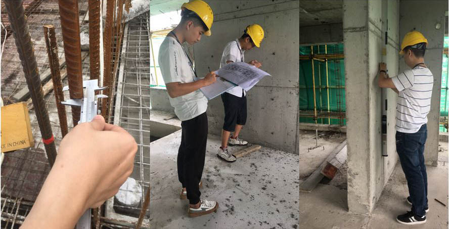 根據(jù)現(xiàn)階段工程項目現(xiàn)象進度,本次季度檢查對“盈泰華府”、“ 汕頭市金湖路和金新路交界西北角片區(qū)膠廊路12號、黨校路10號‘三舊’項目社會停車樓”、 世紀互聯(lián)廠房、金紫名邦項目進行了主體結(jié)構(gòu)混凝土回彈法測試、現(xiàn)澆混凝土結(jié)構(gòu)觀感質(zhì)量及尺寸偏差實測、磚砌體分項工程平整度、垂直度實測、以及鋼筋直徑實測、鋼筋保護層厚度實測?;炷粱貜椃y試每個項目各測試10個構(gòu)件,經(jīng)計算后雖均能滿足設計要求。磚砌體質(zhì)量及尺寸偏差實測每個項目各實測10個部位,合格率為80%及以上,基本能滿足規(guī)范要求。抽檢鋼筋保護層厚度每個項目實測10個部位,合格率90%及以上,滿足規(guī)范要求。鋼筋直徑實測是在鋼筋見證送檢合格后在樓板鋼筋安裝中進行隨機抽查,每個項目抽查10點,合格率為100%,滿足規(guī)范要求。這也是公司要求項目部在項目施工前選擇較大、口碑較好的材料供應商,從材料源頭進行質(zhì)量控制的一個良好反饋,公司也將推進公司材料供應商名錄。
