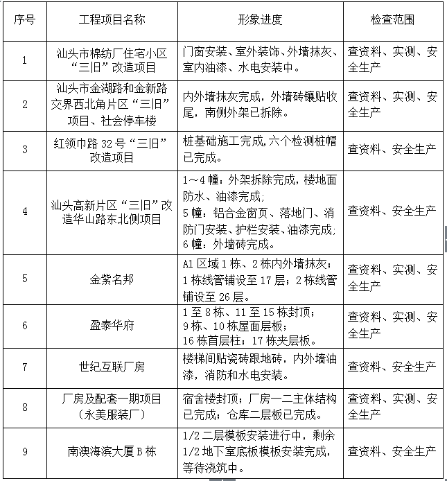 下面9個項目工程接受本次檢查。