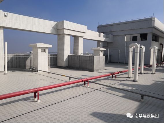 屋面隔熱磚鋪貼平整,磚縫順直,走水順暢,細(xì)部做工精細(xì);排氣管道排氣通暢、順直美觀;天溝順直、排水坡度正確,無積水。