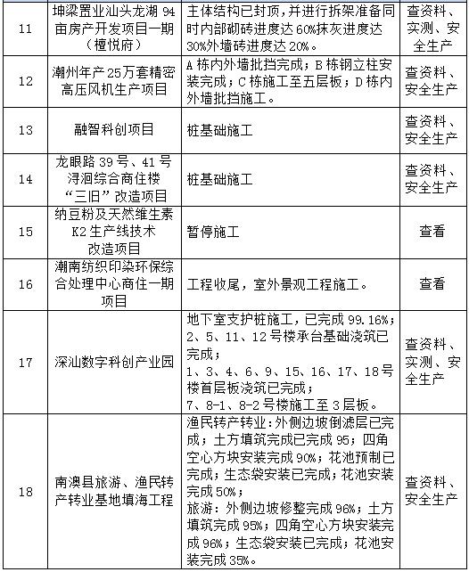 以下18個(gè)項(xiàng)目工程接受本次檢查。