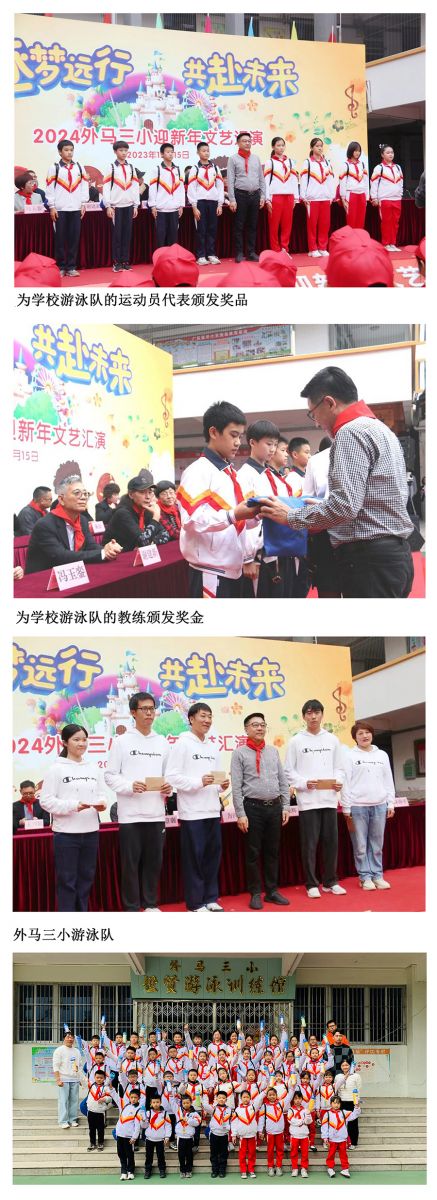 活動(dòng)中,馮校長(zhǎng)感謝南華建設(shè)集團(tuán)一直以來對(duì)外馬三小的教育事業(yè)關(guān)心和支持,對(duì)學(xué)校游泳隊(duì)的支持和資助,為外馬三小捐建了學(xué)堂庭院裝飾項(xiàng)目及捐資助學(xué)等。百年老校風(fēng)雨滄桑見彩虹,萬千學(xué)子薪火相傳續(xù)輝煌,榜樣的力量是無窮的,學(xué)校也希望同學(xué)們能飲水思源,續(xù)寫母校輝煌。