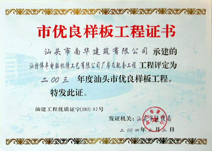 汕頭國(guó)地稅辦公樓省雙優(yōu)工地證書