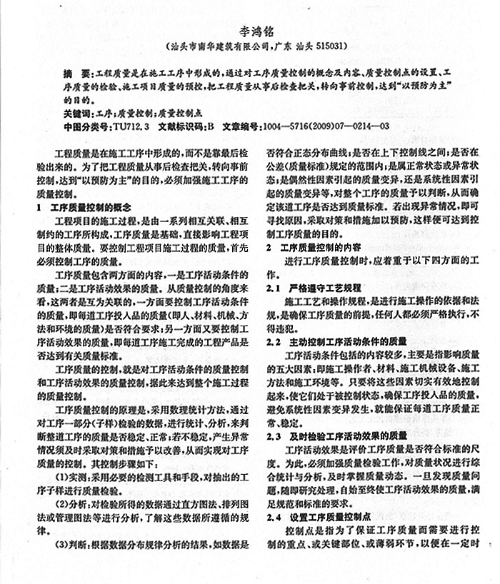 淺談施工工序的質(zhì)量控制(李鴻銘)