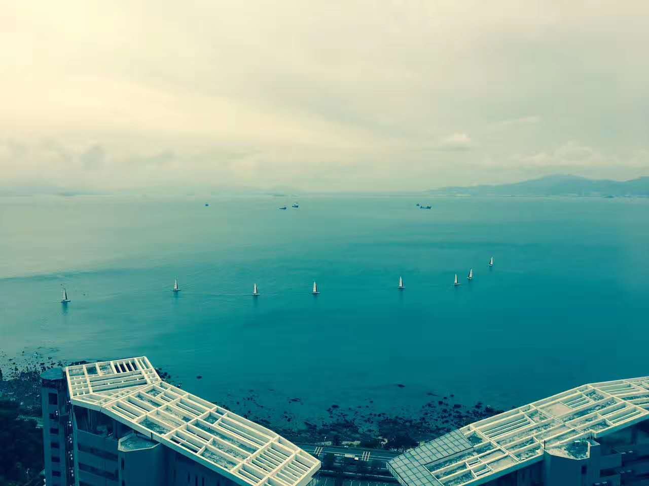 入住的酒店可謂是“面朝大海,春暖花開”。站在陽臺放眼望去,海天一線盡收眼底。
