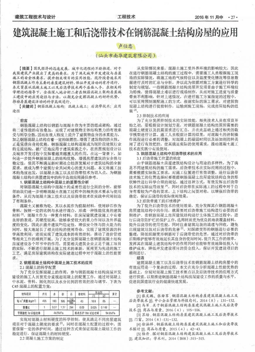 論建筑混凝土施工和后澆帶技術(shù)在鋼筋混凝土結(jié)構(gòu)房屋的應(yīng)用(盧仕忠)