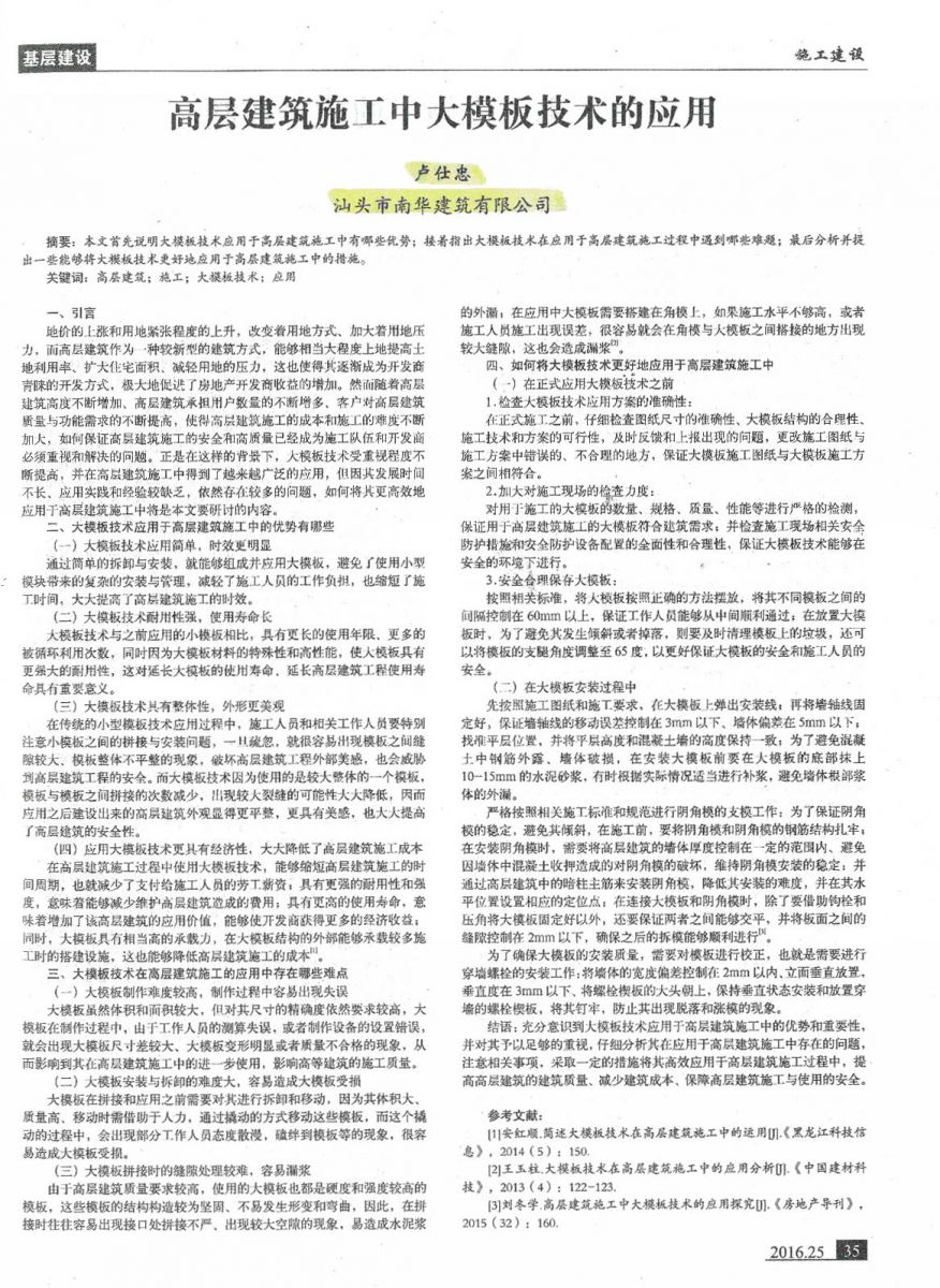 論高層建筑施工中大模板技術(shù)的應(yīng)用(盧仕忠)