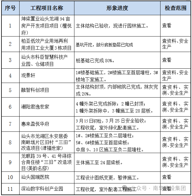以下11個(gè)項(xiàng)目工程接受本次檢查。