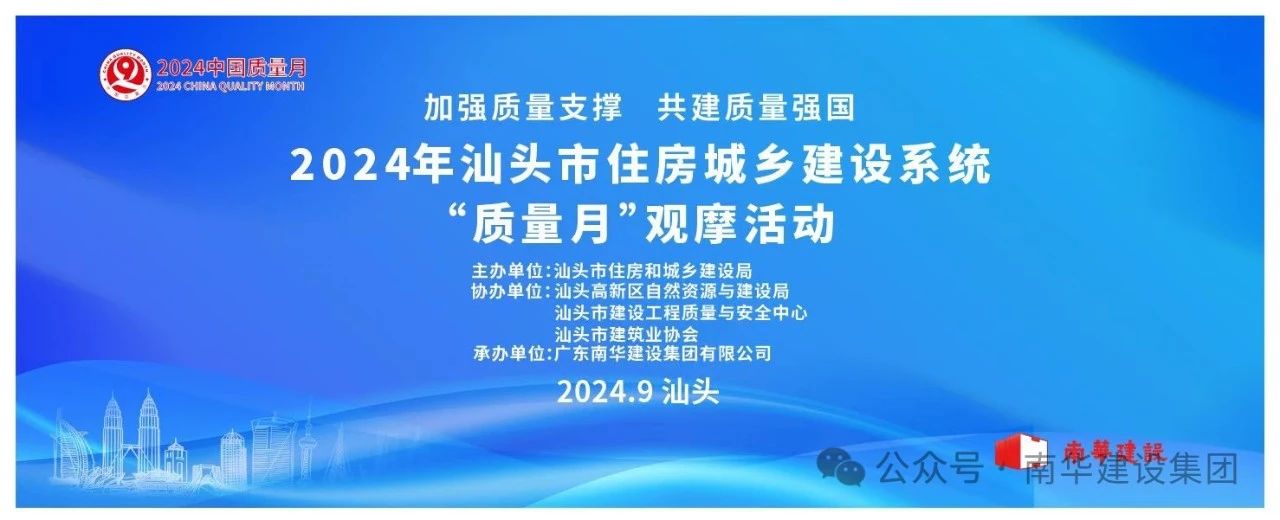 2024年9月4日至5日,由汕頭市住房和城鄉(xiāng)建設(shè)局主辦,汕頭高新區(qū)自然資源與建設(shè)局、汕頭市建設(shè)工程質(zhì)量與安全中心、汕頭市建筑業(yè)協(xié)會協(xié)辦,廣東南華建設(shè)集團(tuán)有限公司承辦,在高新區(qū)融智科創(chuàng)項(xiàng)目舉辦住建領(lǐng)域2024年“質(zhì)量月”現(xiàn)場觀摩交流活動。