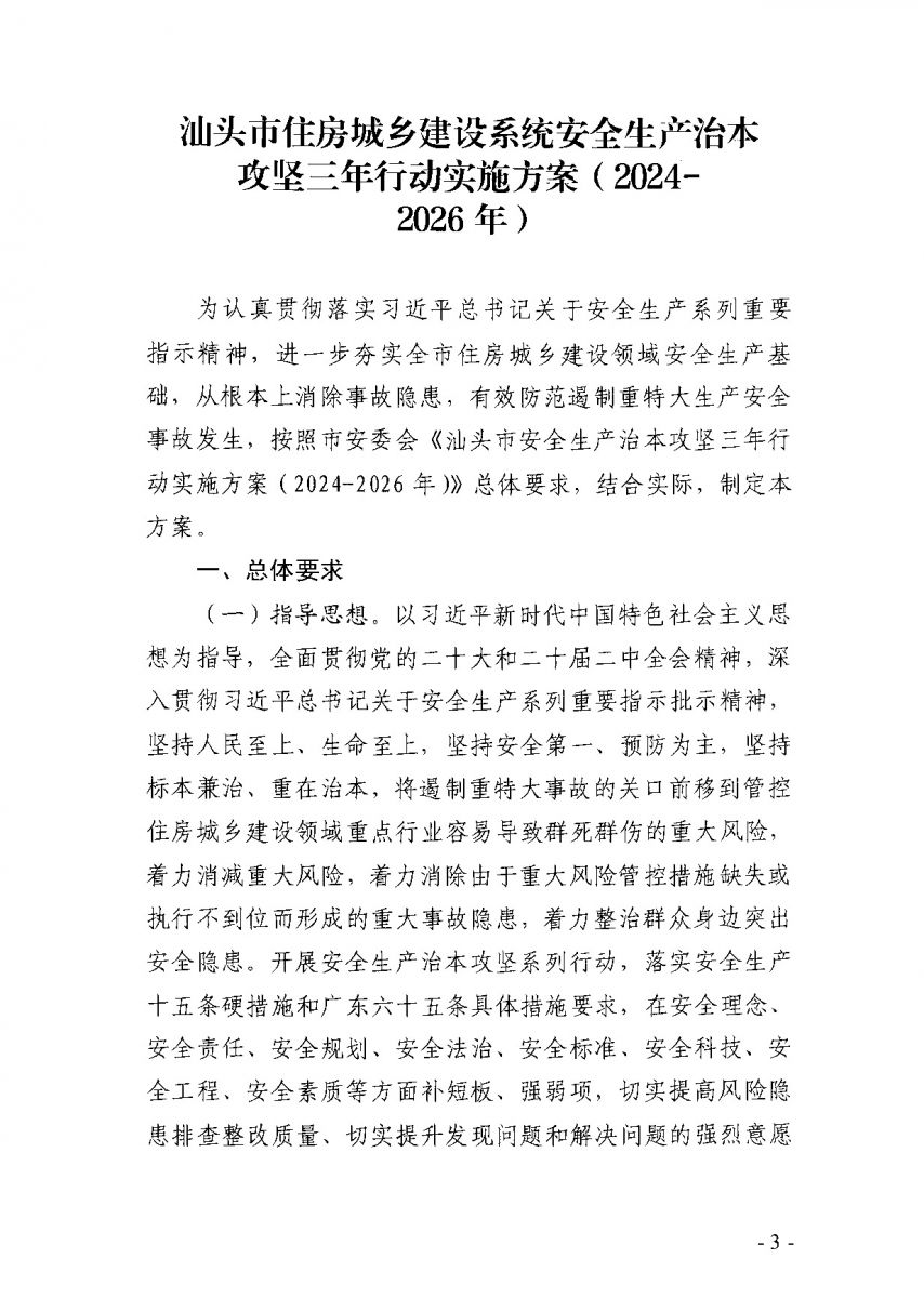 汕頭市住房城鄉(xiāng)建設(shè)系統(tǒng)安全生產(chǎn)治本攻堅(jiān)三年行動(dòng)實(shí)施方案(2024-2026年)